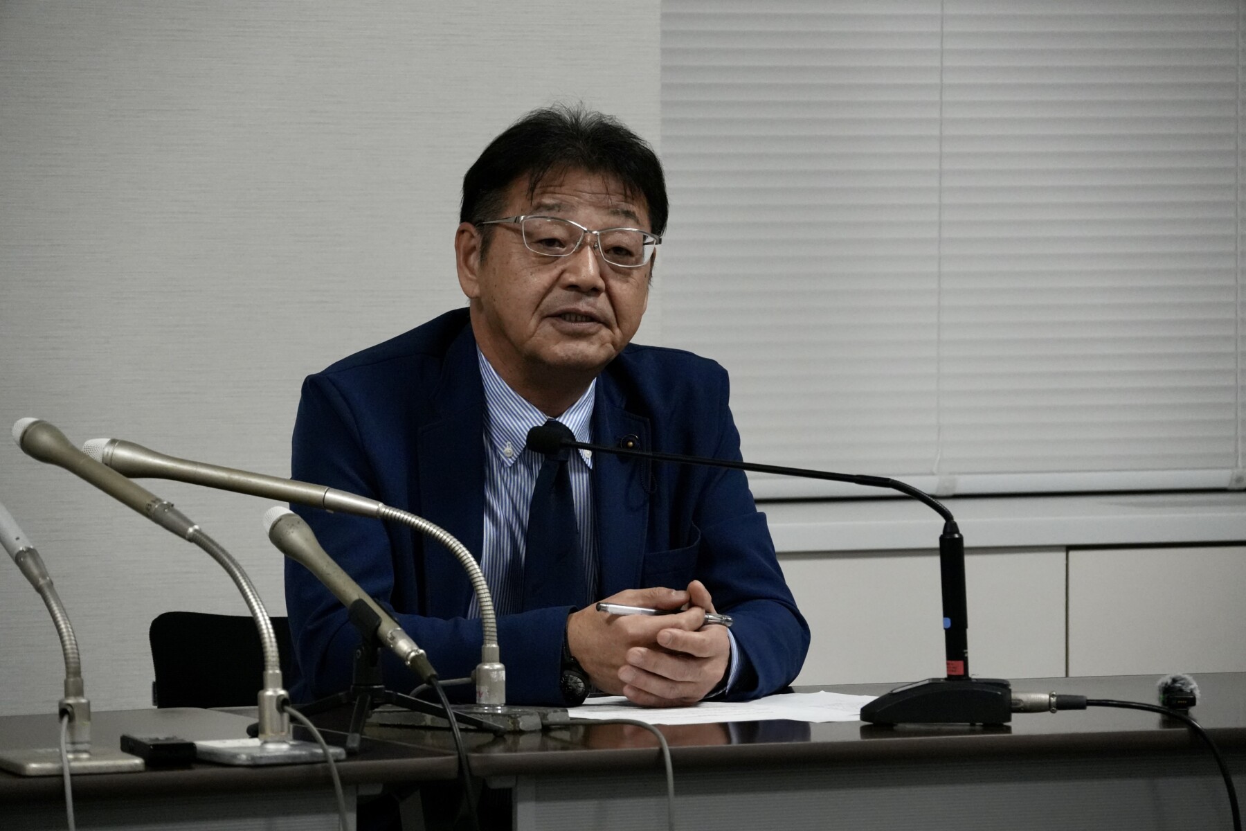 記者会見で、立憲民主党の笹田浩幹事長は「泊発電所の3号機再稼働について鈴木知事が同意を表明したことに対し、立憲民主党道連と民主道民連合で抗議声明を出した。この問題は、議会でも数年間にわたって議論をしてきた課題。