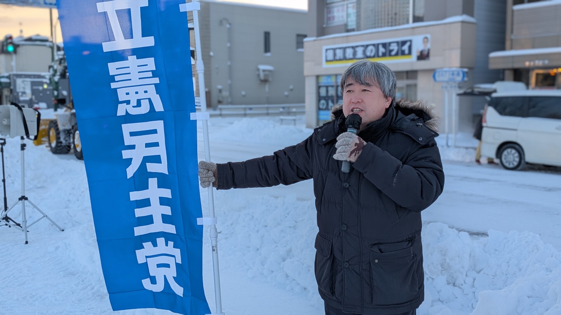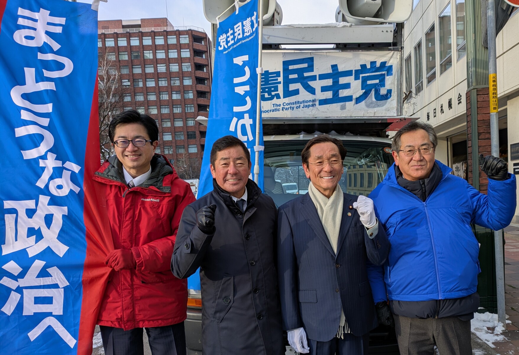 最後に道下大樹代表代行(衆議・北海道1区)からは、「賃上げ以上に物価高が続き、暮らしは苦しくなっている。高市政権が、悪しき金融政策であるアベノミクスを引き続き行い、過度な国債を発行して円安を引き起こすなか、食料やエネルギー等様々な物を輸入することで物価が上がっているのが原因だ。北海道において、一次産業や観光産業、地場産業を応援し、食料品・医薬品・エネルギーにおいて北海道からメイドインジャパンを進め地域経済を回していきたい」等を訴え、街頭演説会を終えました。
