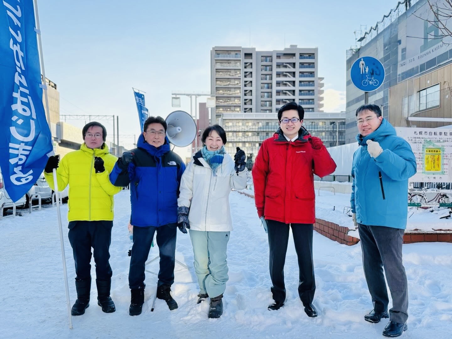 第4区 定森光(札幌市議・西区)、武田浩光(道議・札幌市西区)、おおつき紅葉代表(衆議)、道下大樹(衆議・北海道1区)、中村剛(札幌市議・西区)【JR琴似駅前】